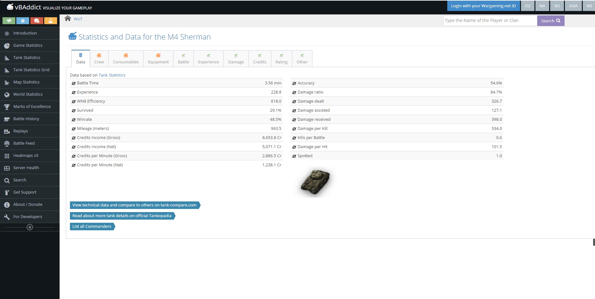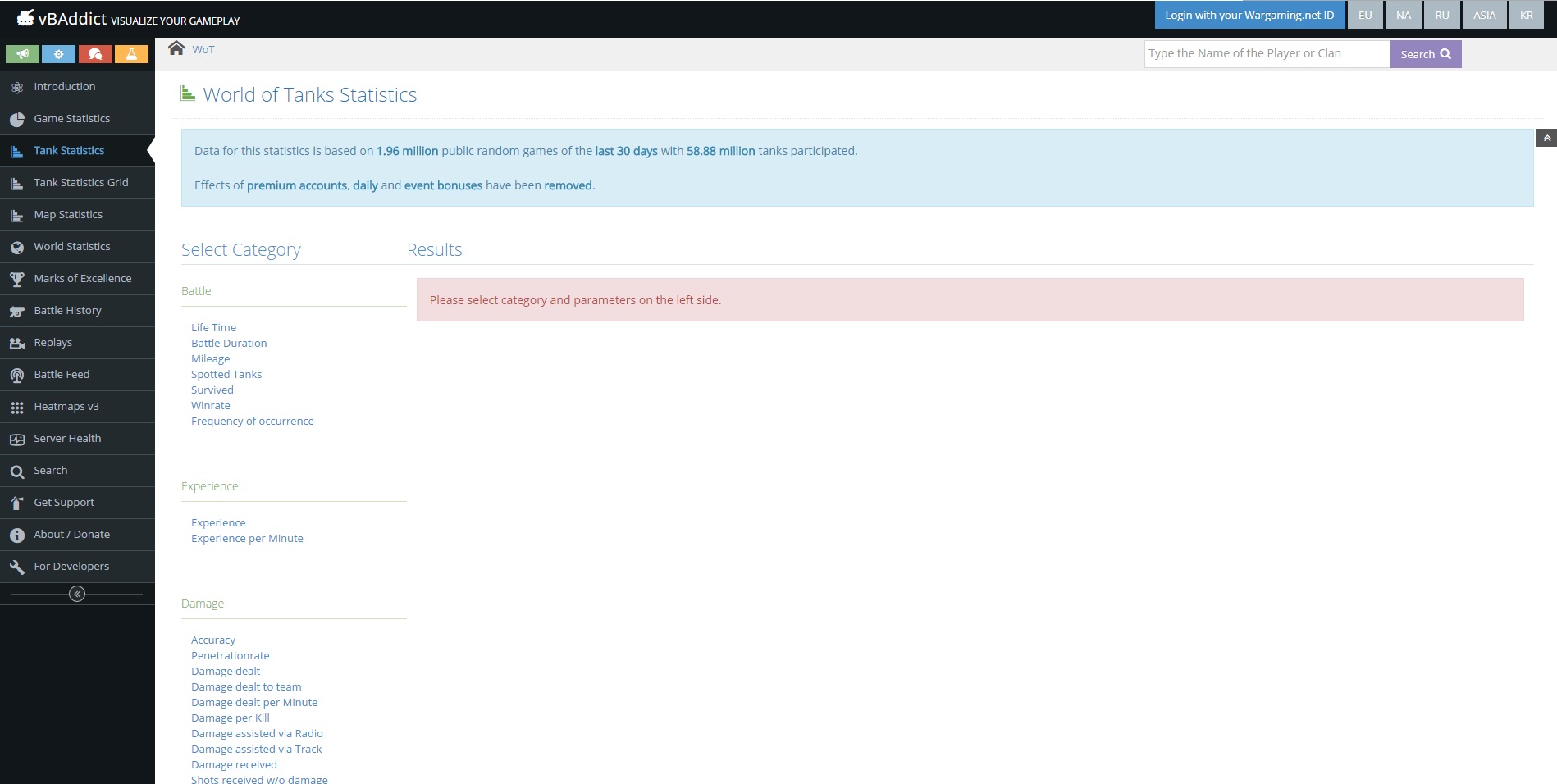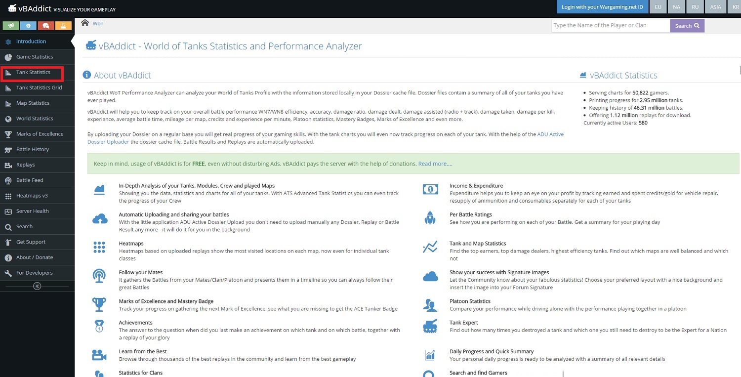 まずはvBaddictにアクセするとこんな感じのトップ画面が表示される 左サイドメニューの赤く囲ったTank Statisticsをクリック