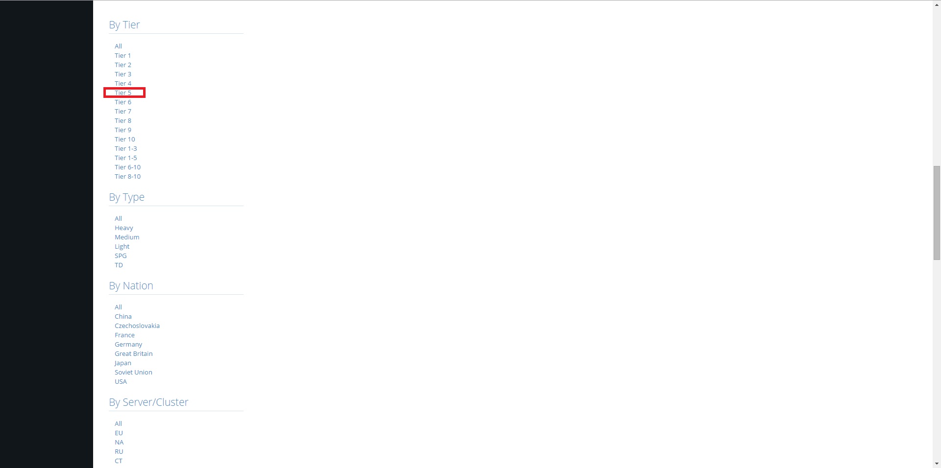 今度はちょっと下の方にスクロールして車両のタイプやTierを選択してみよう 今回は赤く囲ったTier5を選択