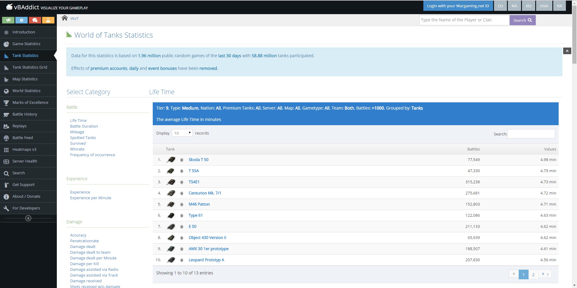 外部サイト(vBaddict)でユニカム勢の動向をチェキよ! vBaddicはWoTに関する様々な統計を閲覧できる海外サイト このサイトを使えばどの車両でどのような拡張パーツや消耗品の組み合わせが人気か一目瞭然